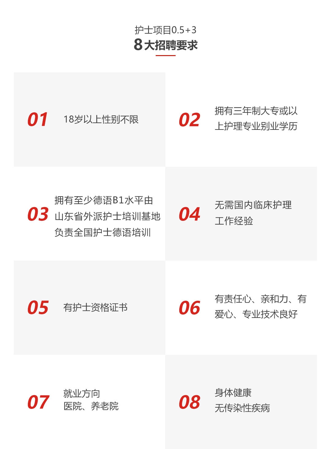 2012年中国驻德国大使馆、中华护理学会以及山东省外派护士培训基地共同促成了中国护士赴德国工作的出国项目,该项目被中华人民共和国商务部网站、德国ARD电视台、ChinaDaily日本读卖新闻、新华网、新浪、网易等媒体多次报道。目前与山东省外派护士培训基地合作的德国医疗机构遍布德国的13个州...